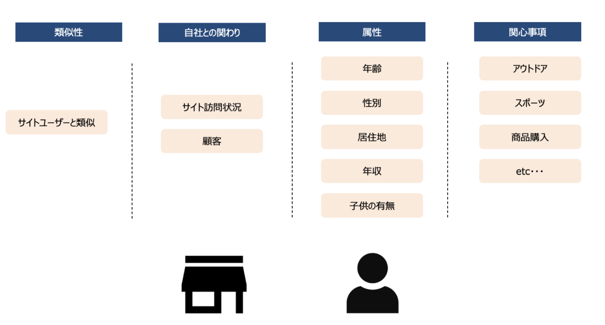 自社のサイトに訪れているユーザーと似ている属性の人を対象に広告を配信することができます。